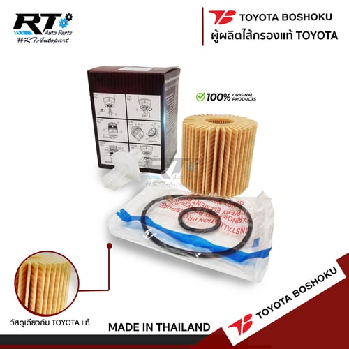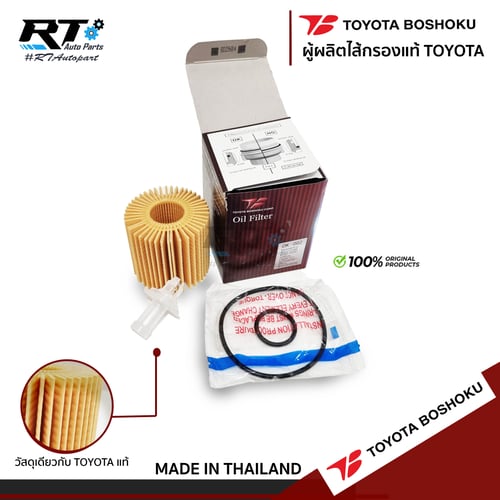 กรองน้ำมันเครื่อง โตโยต้าโบโชกุ (Toyota Boshoku) เป็นอีกหนึ่งผลิตภัณท์ของบริษัท ที่พัฒนาขึ้น เพื่อต้องการให้ลูกค้าได้ใช้กรองน้ำมันเครื่อง กรองอากาศและกรองแอร์ ที่มีคุณภาพตามมาตราฐาน OEM100% โดยมีการใช้วัสดุ การคัดสรรและขั้นตอนการผลิตและการตรวจสอบคุณภาพหลังการผลิตแบบเดียวกับที่ บริษัท Toyota Boshoku Co. ผลิตให้แก่ โรงงานประกอบรถยนตร์โตโยต้า 100%