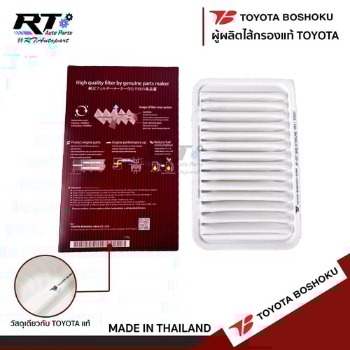 ไส้กรองโตโยต้าโบโชกุ (Toyota Boshoku) เป็นอีกหนึ่งผลิตภัณท์ของบริษัท ที่พัฒนาขึ้น เพื่อต้องการให้ลูกค้าได้ใช้ ไส้กรองที่มีคุณภาพตามมาตราฐาน OEM100% โดยมีการใช้วัสดุ การคัดสรรและขั้นตอนการผลิตและการตรวจสอบคุณภาพหลังการผลิตแบบเดียวกับที่ บริษัท Toyota Boshoku Co. ผลิตให้แก่ โรงงานประกอบรถยนตร์โตโยต้า 100%
